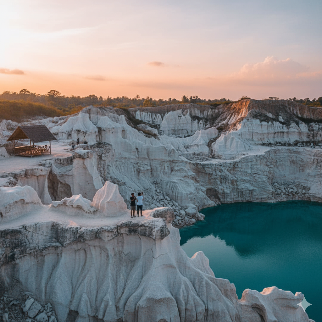 Bekas tambang kapur yang kini menjadi destinasi populer. Menawarkan pemandangan tebing kapur putih menyerupai kawah dan kolam air toska yang unik.